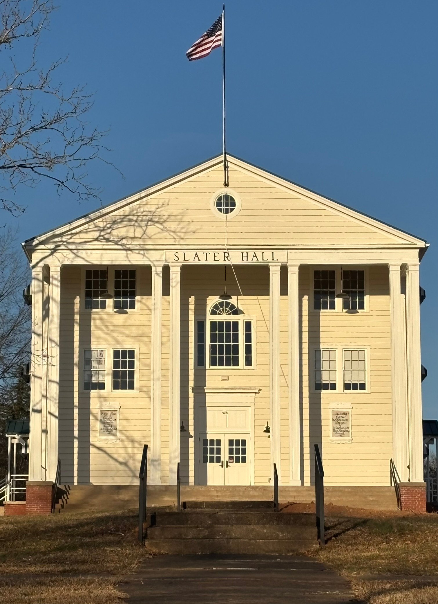 Slater hall was constructed in 1938 to serve as the community building for the Slater Mill Community.