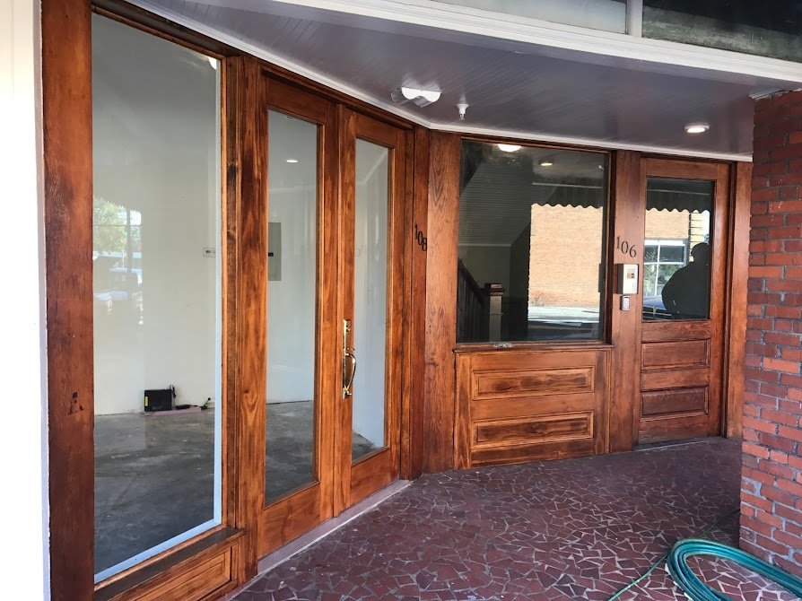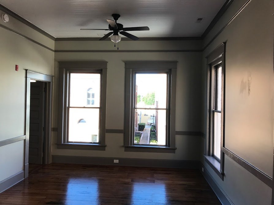 This commercial building occupies a prominent corner in Clinton. The building required the restoration of the principal banking space.